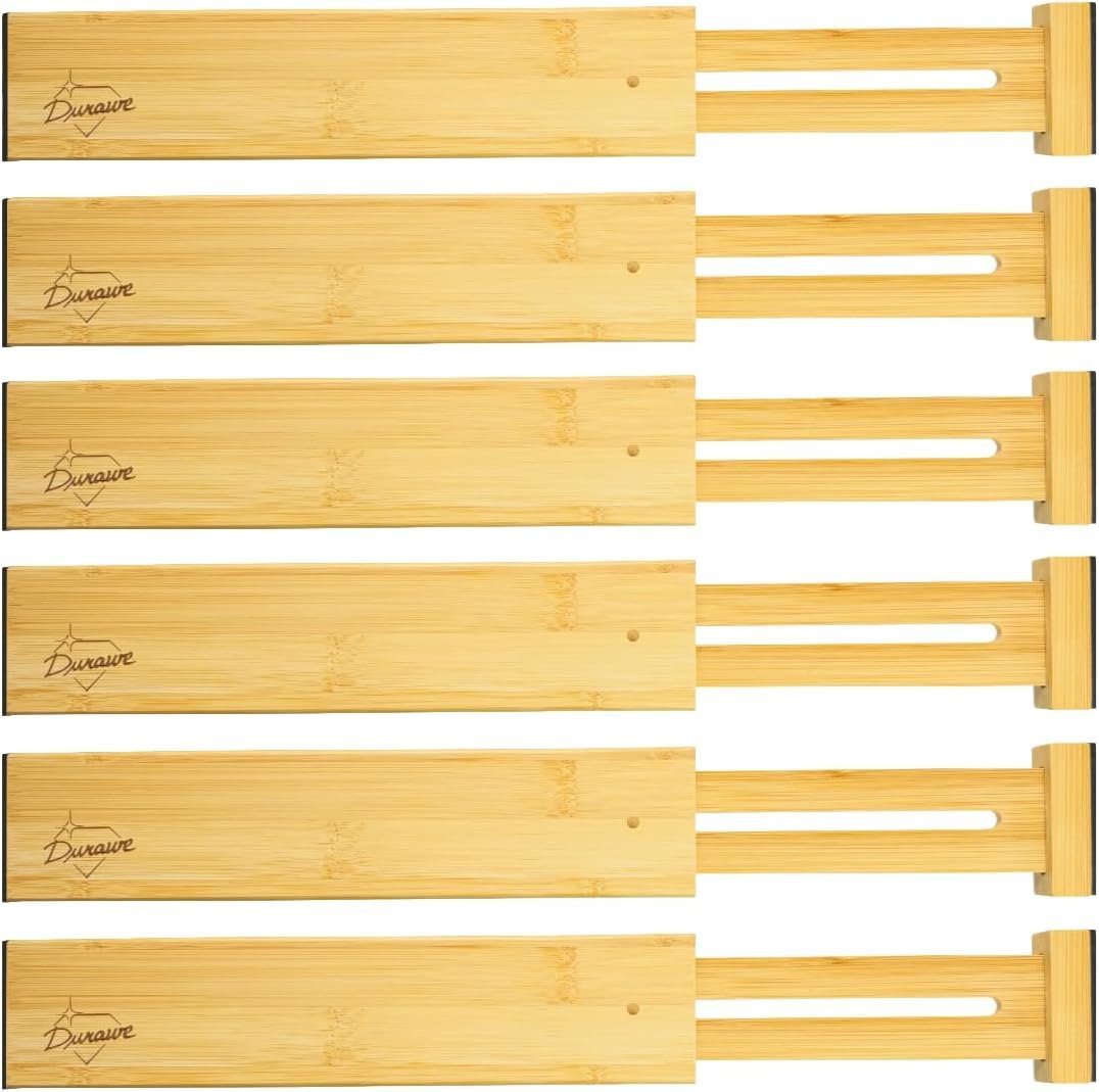 6 Pack Bamboo Drawer Dividers – 17″ to 21.5̸...